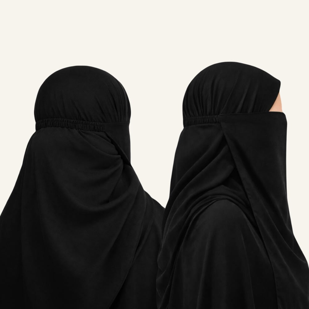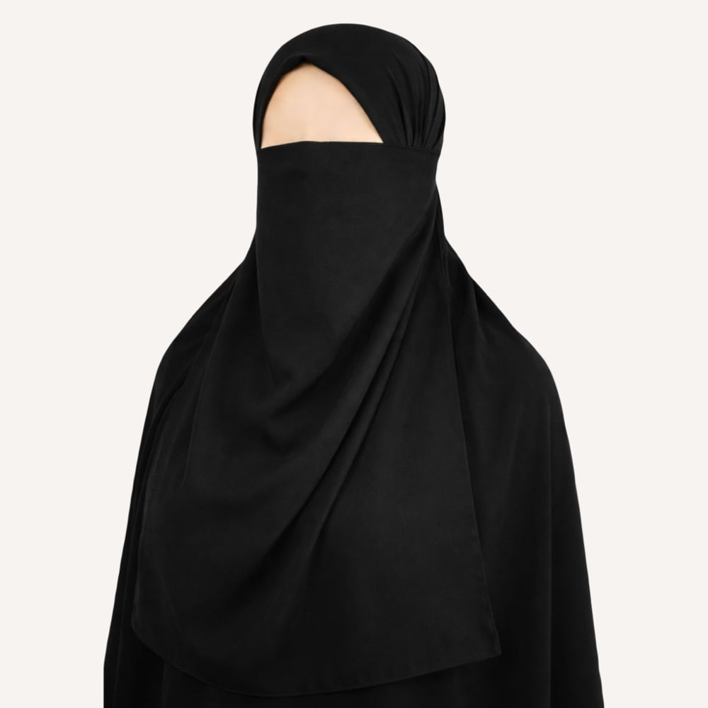 An extra long half niqab designed for ease and coverage.